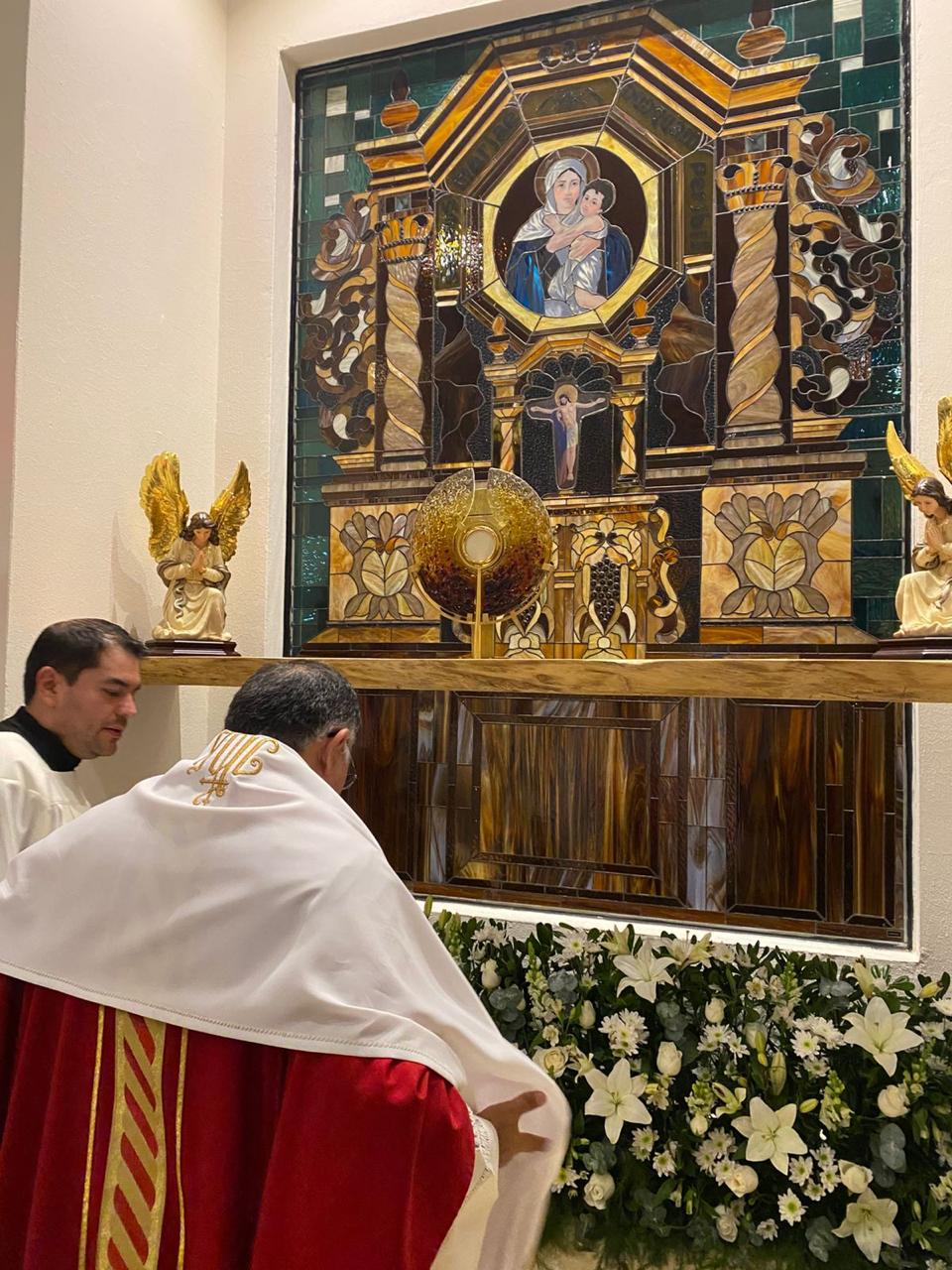 Ese día se llevó a cabo la Bendición de la Capilla de Adoración, un espacio destinado al encuentro íntimo con Jesús Eucaristía, donde los fieles podrán acudir para orar, agradecer y adorar al Señor en silencio. La bendición fue presidida por el Sr. Obispo Héctor López Alvarado.