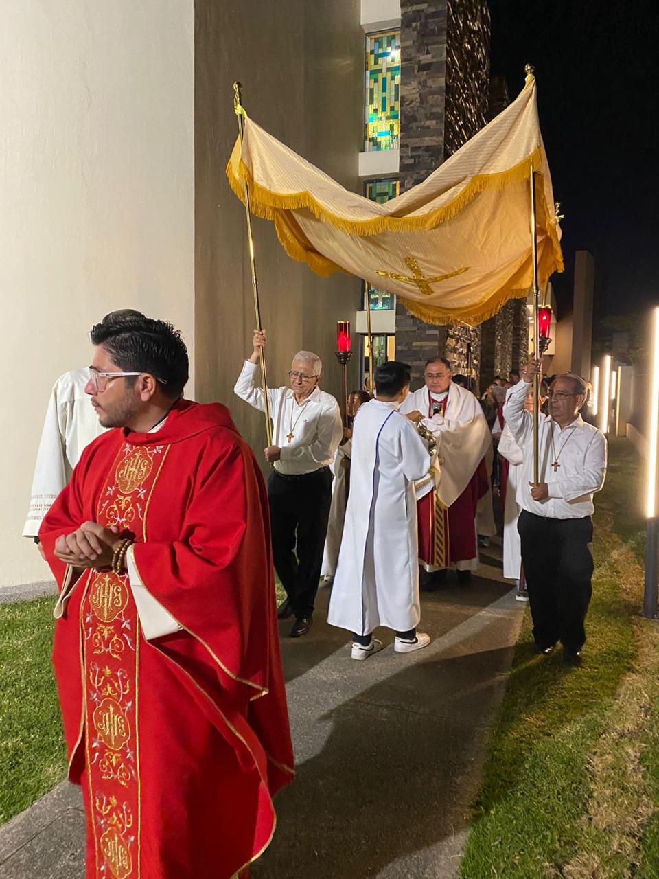 Posteriormente, se celebró la Santa Misa, también presidida por el Sr. Obispo Héctor López Alvarado, en un ambiente de profunda oración y alegría, acompañado por sacerdotes, grupos parroquiales y numerosos fieles.